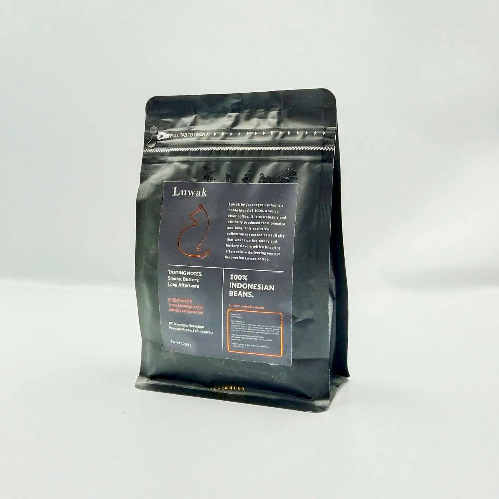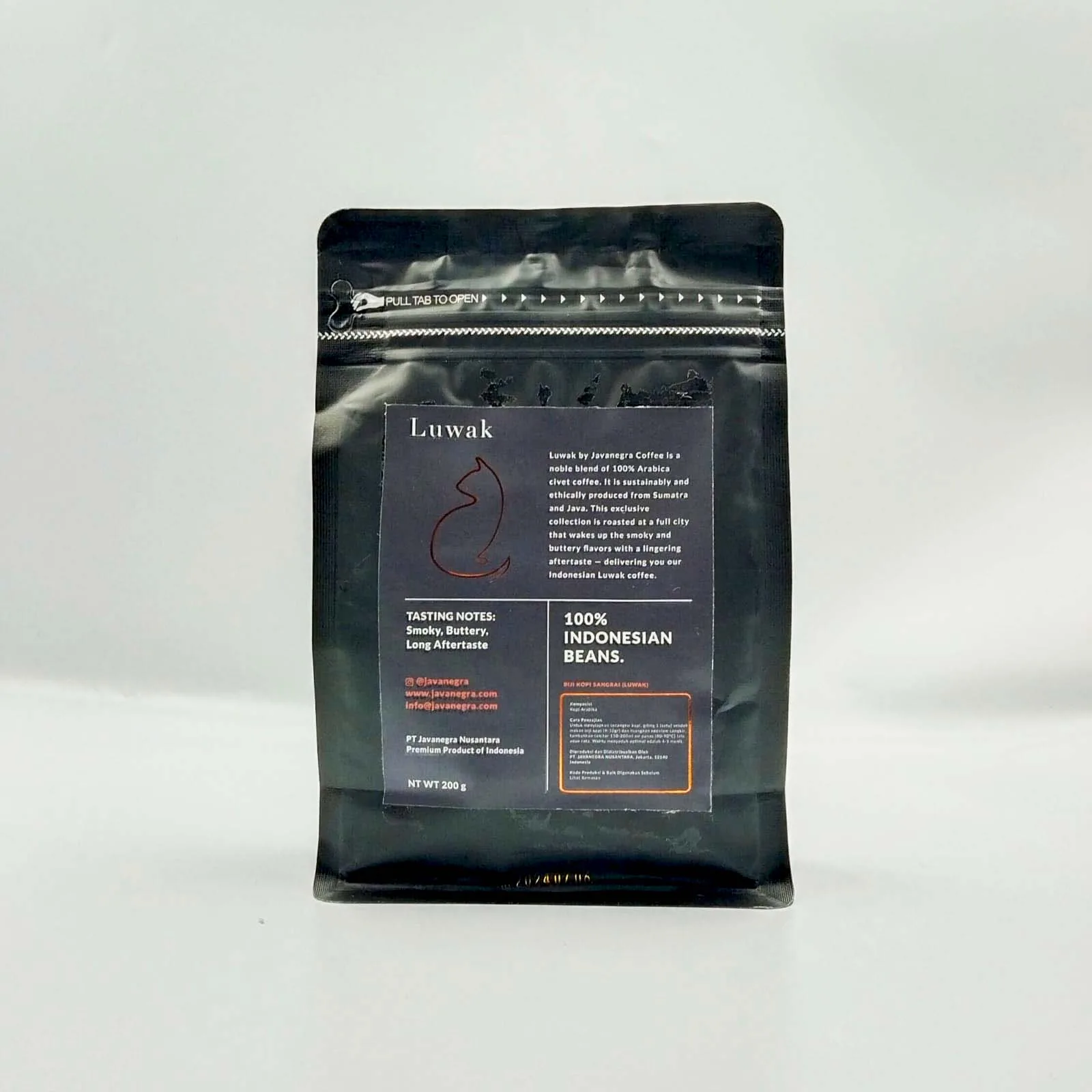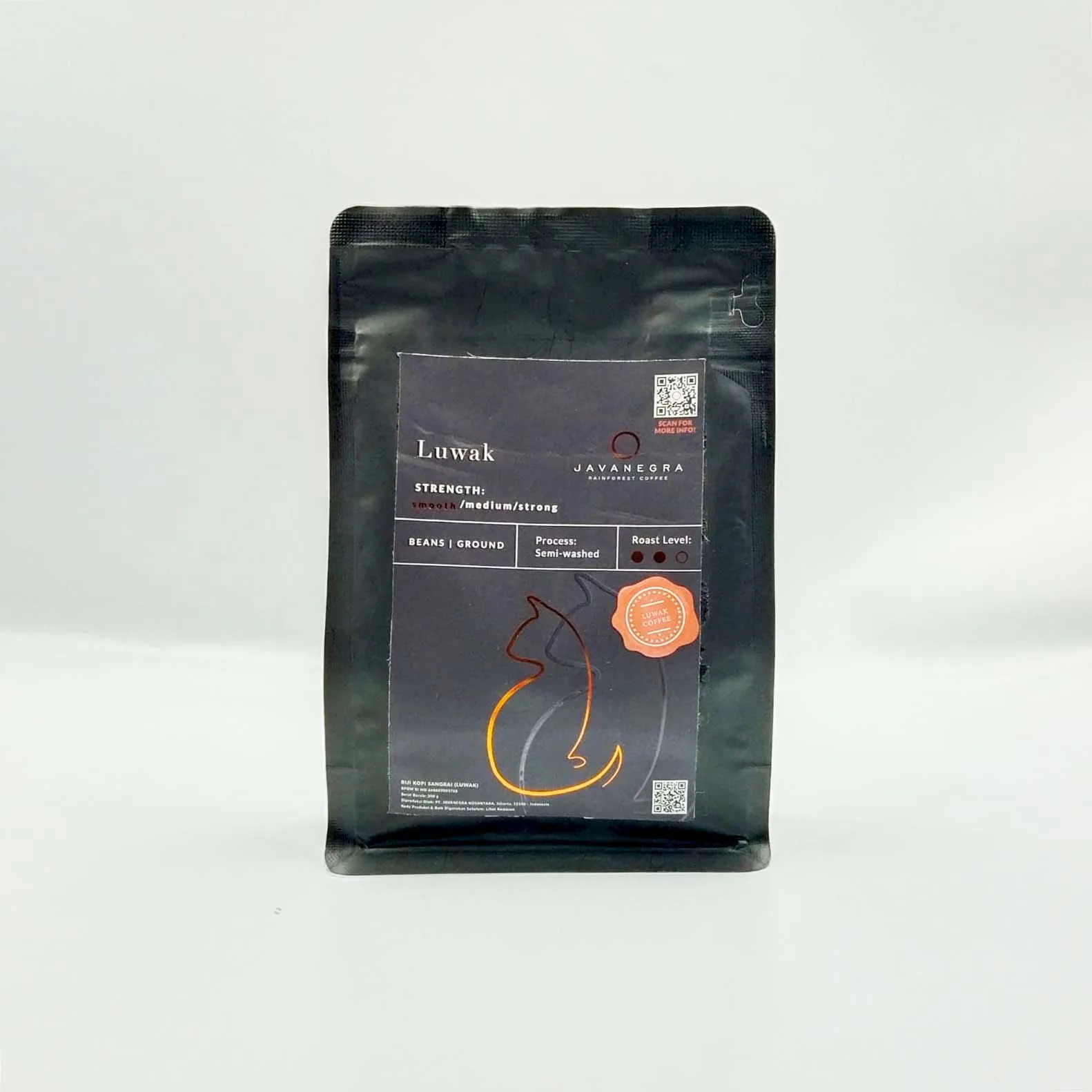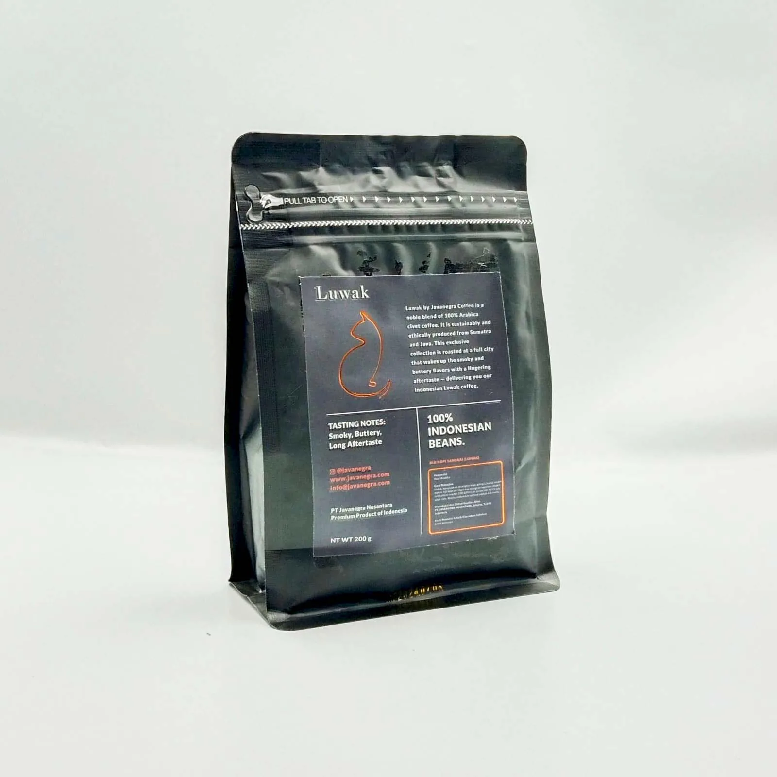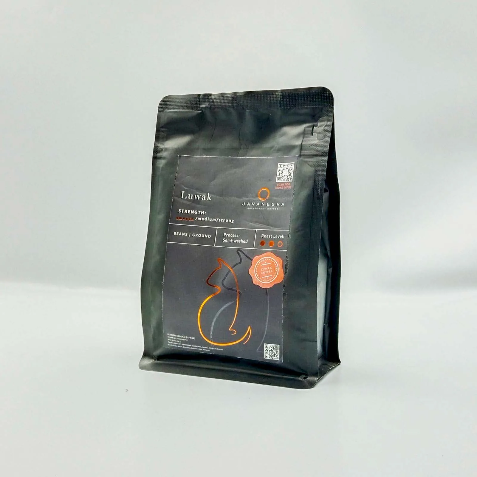 Javanegra Luwak Coffee 200g is a rare and premium Indonesian coffee known for its exceptionally smooth character and refined flavor profile. Sourced from carefully selected beans and processed through the traditional civet method, this coffee delivers a uniquely mellow cup with low bitterness and a naturally rich aroma.